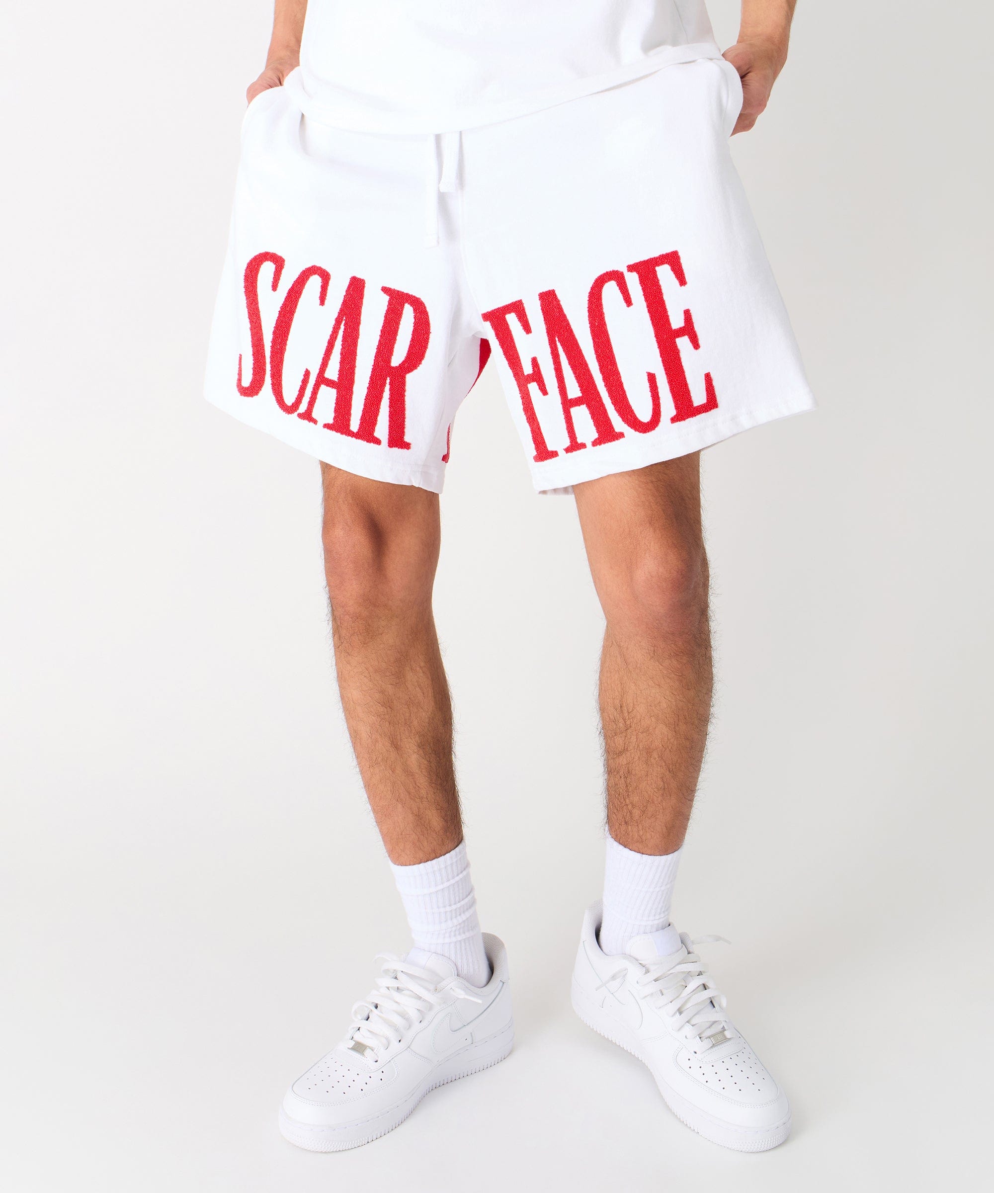 Scarface Fleece Glitter Sugar Print Shorts - White