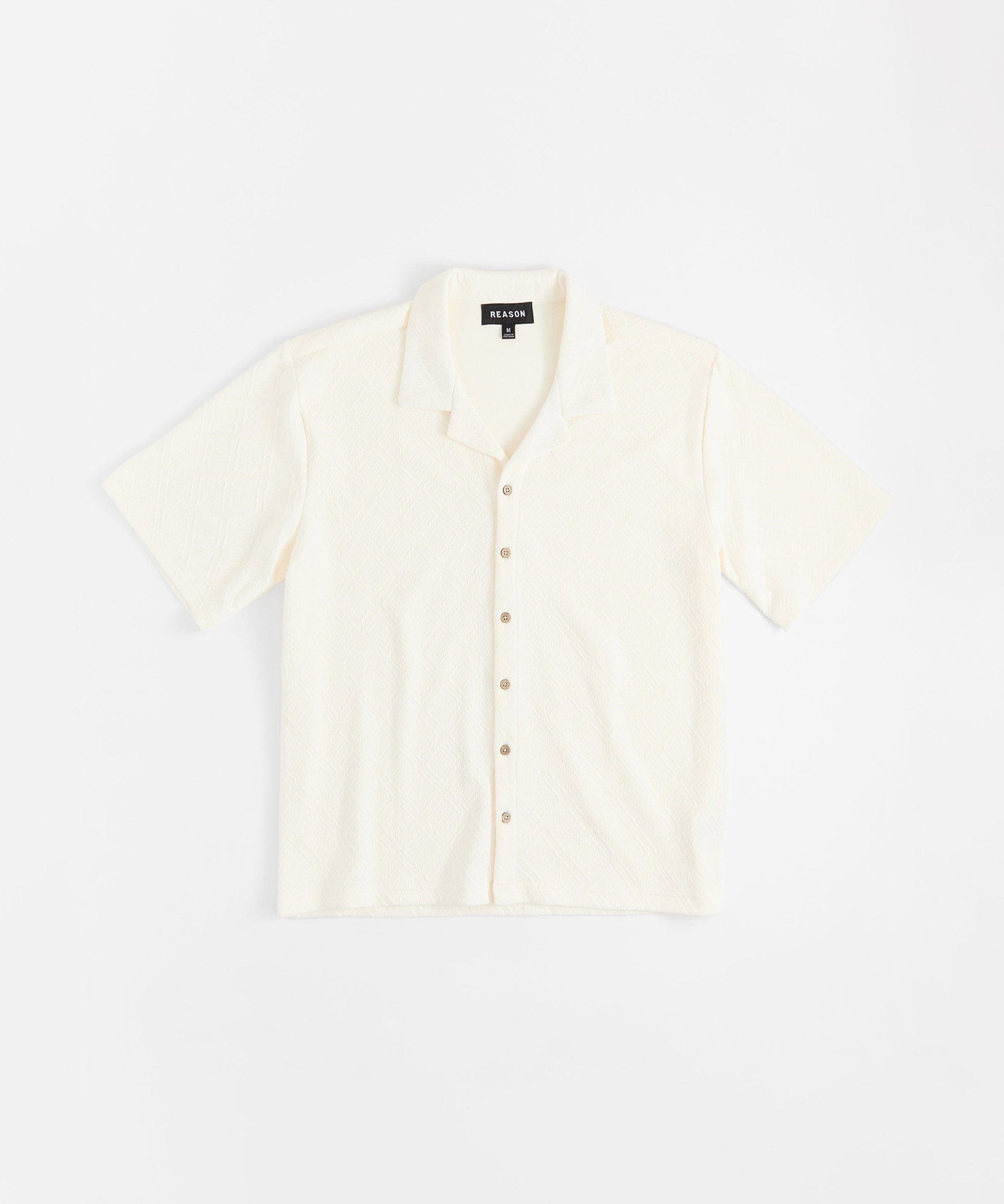 Textured Knit Short Sleeve Button Down Shirt - Light Beige