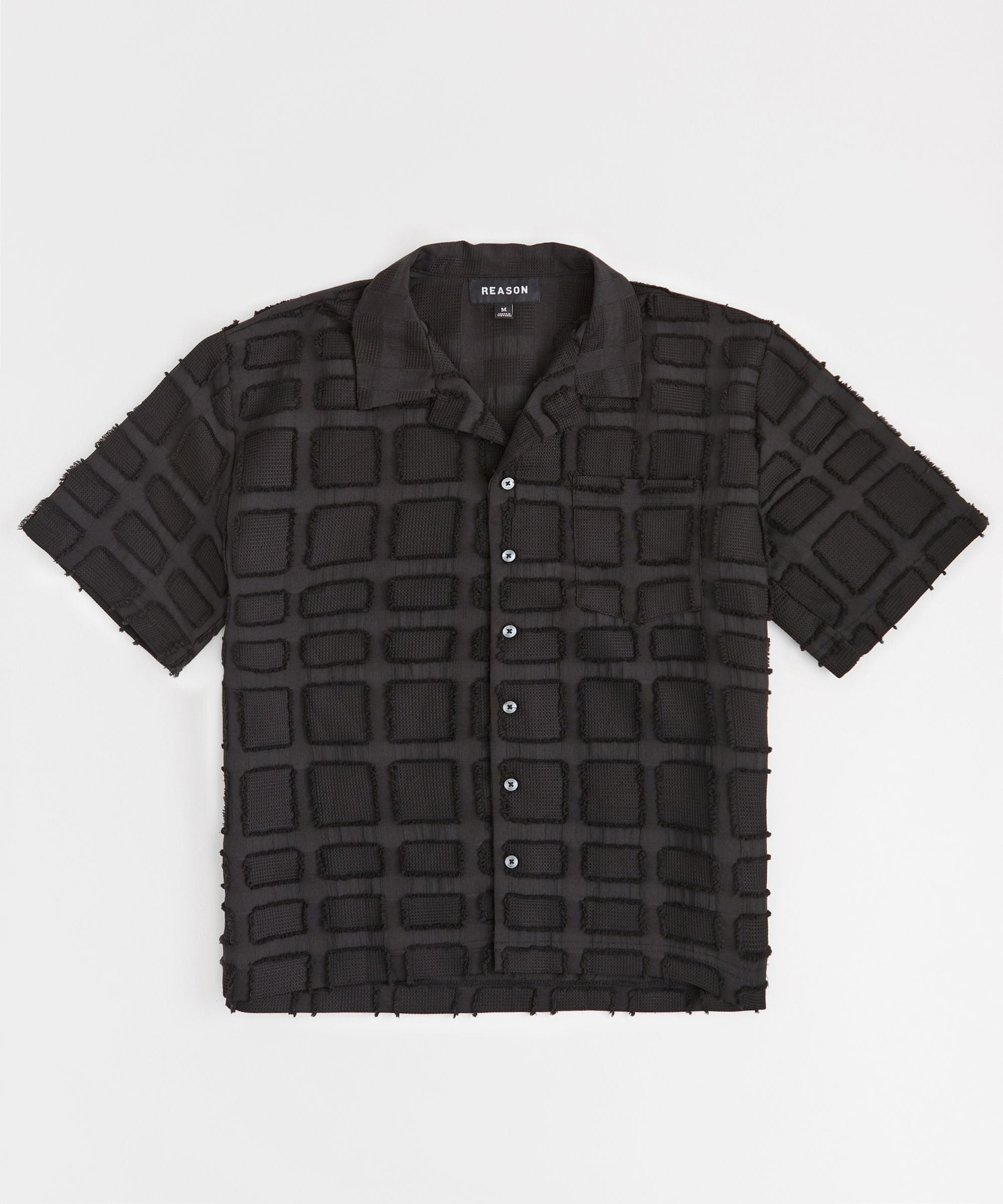 Kids Textured Short Sleeve Button Down Shirt - Black