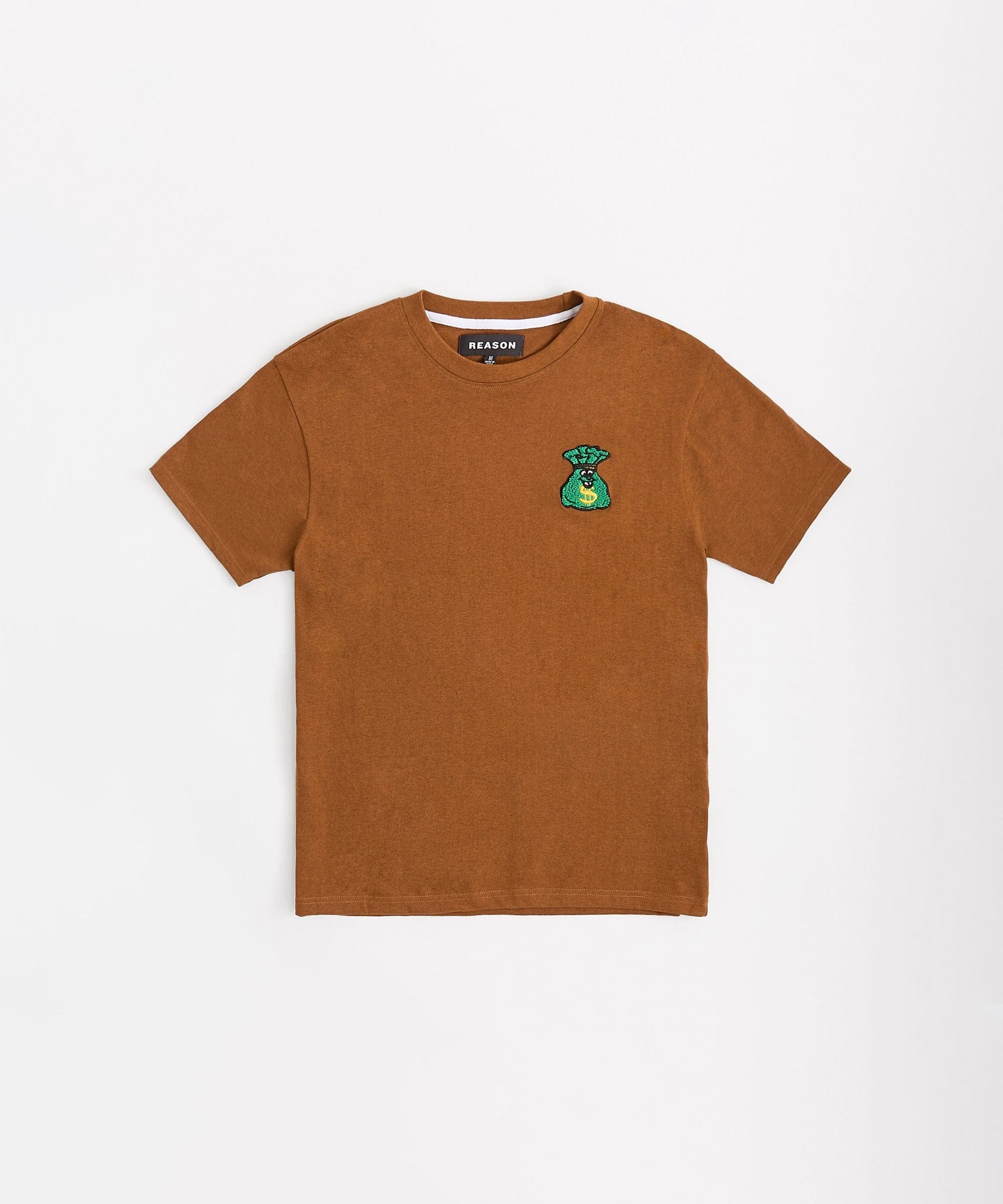 Money Bags Chenille Patch Short Sleeve Tee - Khaki