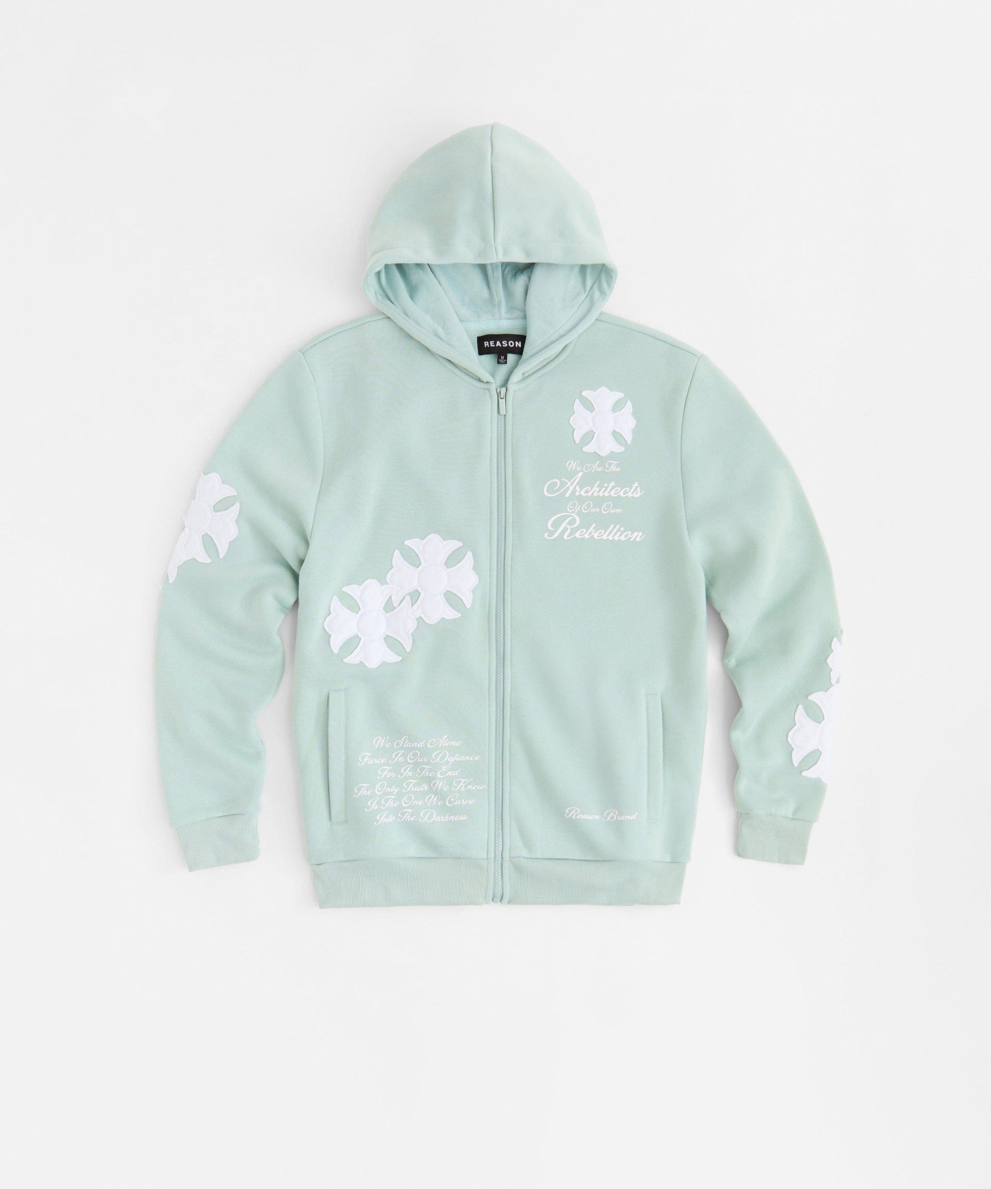 Rebellion Chenille Patched Zip Up Hoodie - Medium Blue