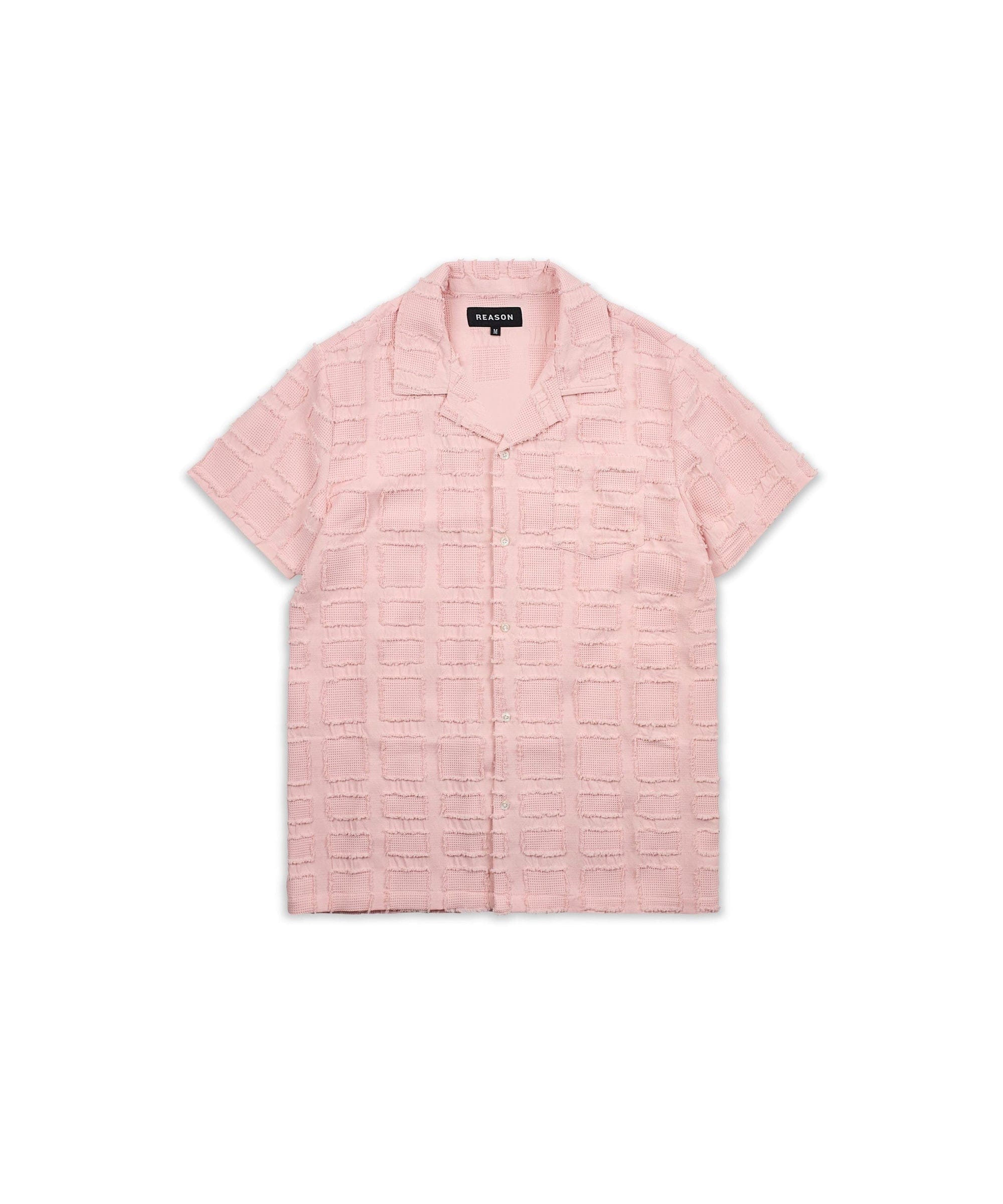 Textured Short Sleeve Button Down Shirt - Light Pink